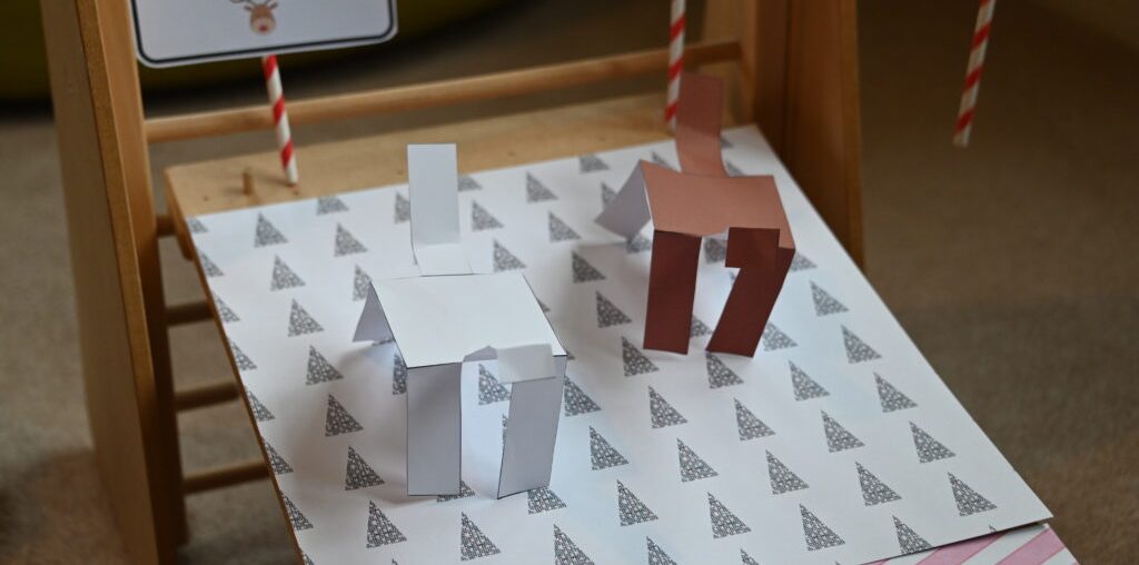 These walking reindeer made us laugh so much. They work brilliantly, but can be a little fiddly to get going. This activity is traditionally called the walking horse, but as it’s nearly Christmas, we’ve made reindeer!